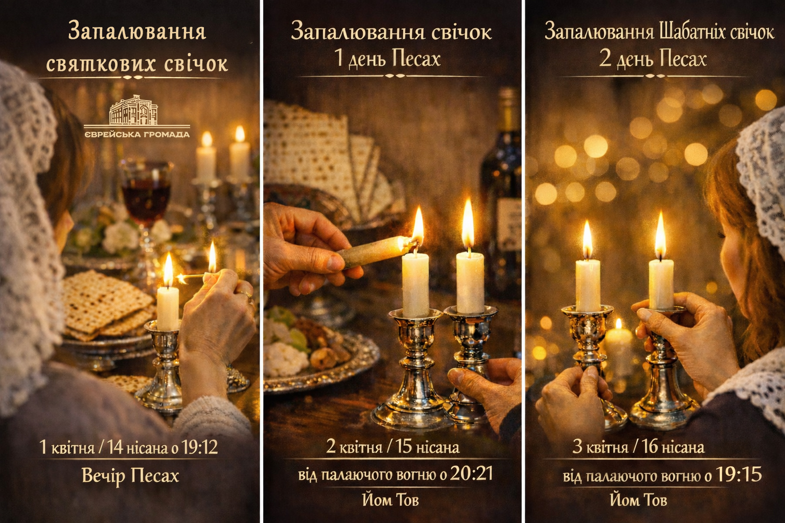Шановні віряни!Вітаємо вас із великим святом Песах! Це свято визволення наших предків із єгипетського рабства, яке нагадує нам про важливість свободи, гідності та віри в Б-га. Песах — це час очищення, оновлення і глибоких роздумів. Нехай цей святковий період наповнить ваші серця радістю, миром і благословенням.Святкуючи Песах, ми не лише згадуємо великі чудеса, які сталися з нашими предками, а й молимося за визволення та благополуччя для всіх нас. Нехай цей Песах стане для кожного з нас не лише святом свободи, а й нагодою для духовного зростання і вдячності за дари життя.Бажаємо вам щасливого і благословенного святкування, наповненого світлом і надією. Нехай смак маци та святкові традиції принесуть радість у ваші домівки, а віра і глибока єврейська традиція стануть на допомогу в кожному дні. Песах кошер ве самеах!