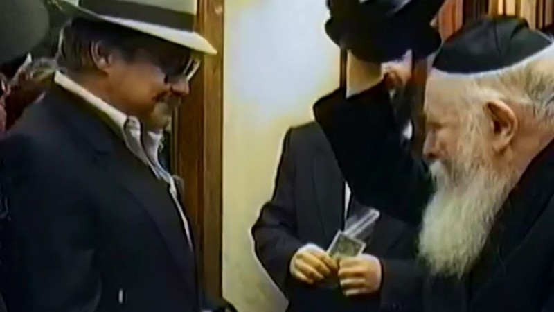 📷 На фото: Ребе вітається з власником магазину, де придбавали капелюхи для Ребе.