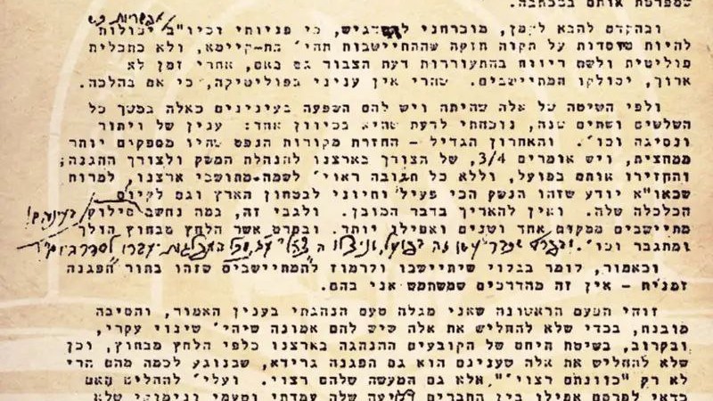 І, забігаючи наперед, мушу підкреслити: мої звернення та подібні кроки можливі лише тоді, коли вони можуть спиратися на тверду надію, що поселення буде довготривалим і стійким, а не є політичною акцією і не має на меті викликати тимчасове пожвавлення громадської думки — навіть якщо згодом, за короткий час, поселенців буде виселено. Бо справа моя — не політика, а Галаха.